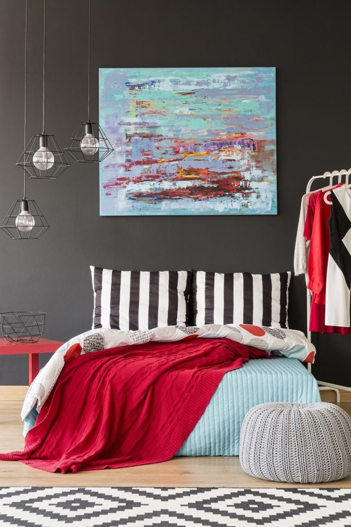 Let ook goed op het kleurgebruik in je schilderij. Een bepaalde tint kan een gevoel oproepen bij mensen en is heel bepalend voor de sfeer in de ruimte. Vaak worden donkere kleuren gebruikt in de slaapkamer en lichtere kleuren in de woonkamer of keuken.